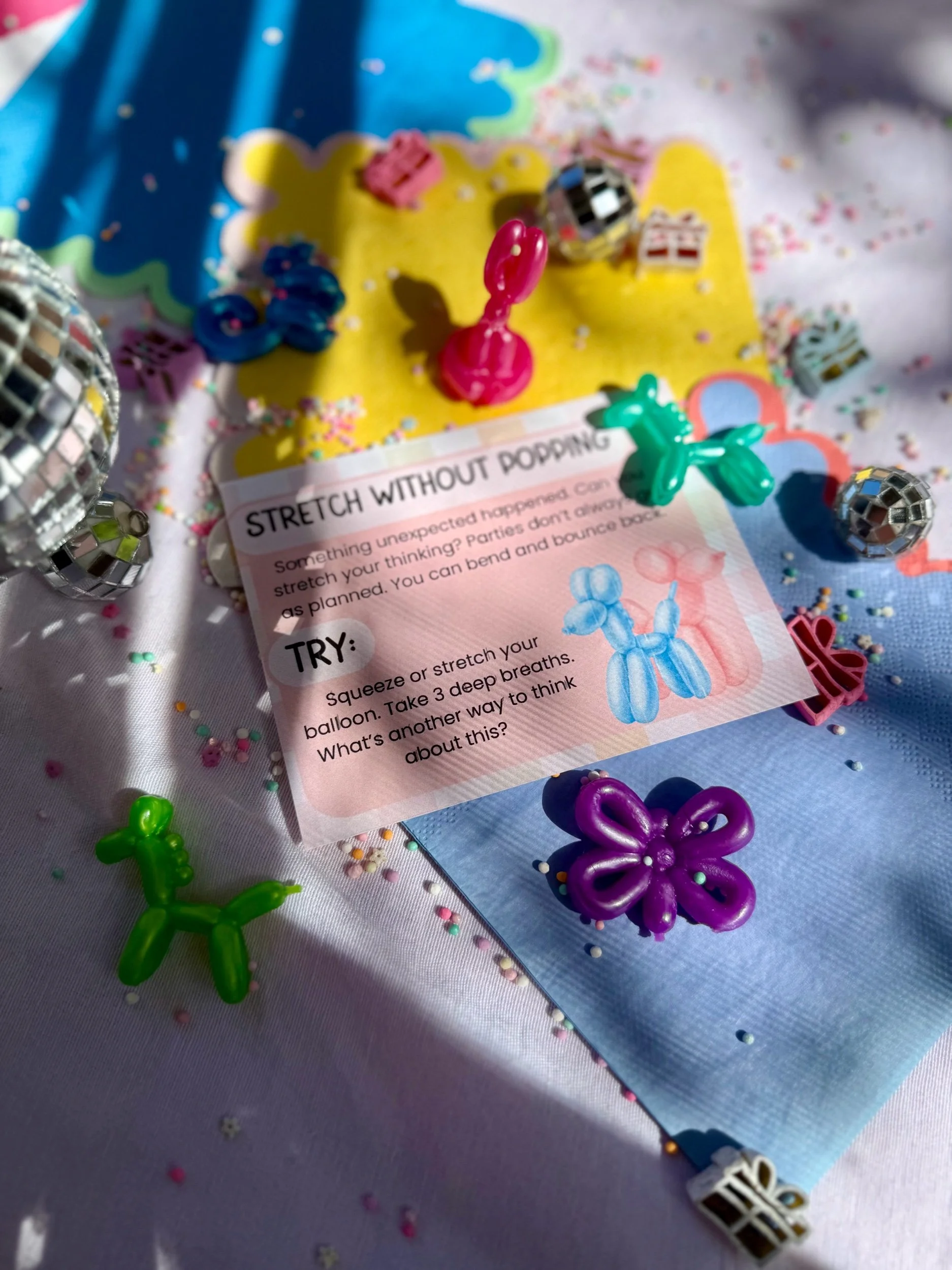 This kit offers sensory delight with thoughtful emotional support. It helps kids play through their excitement, regulate their energy, and practice calming strategies in a way that feels engaging, not overwhelming. And when paired with the Mini Birthday Digital Toolkit, it becomes a powerful, play-based tool for emotional growth.