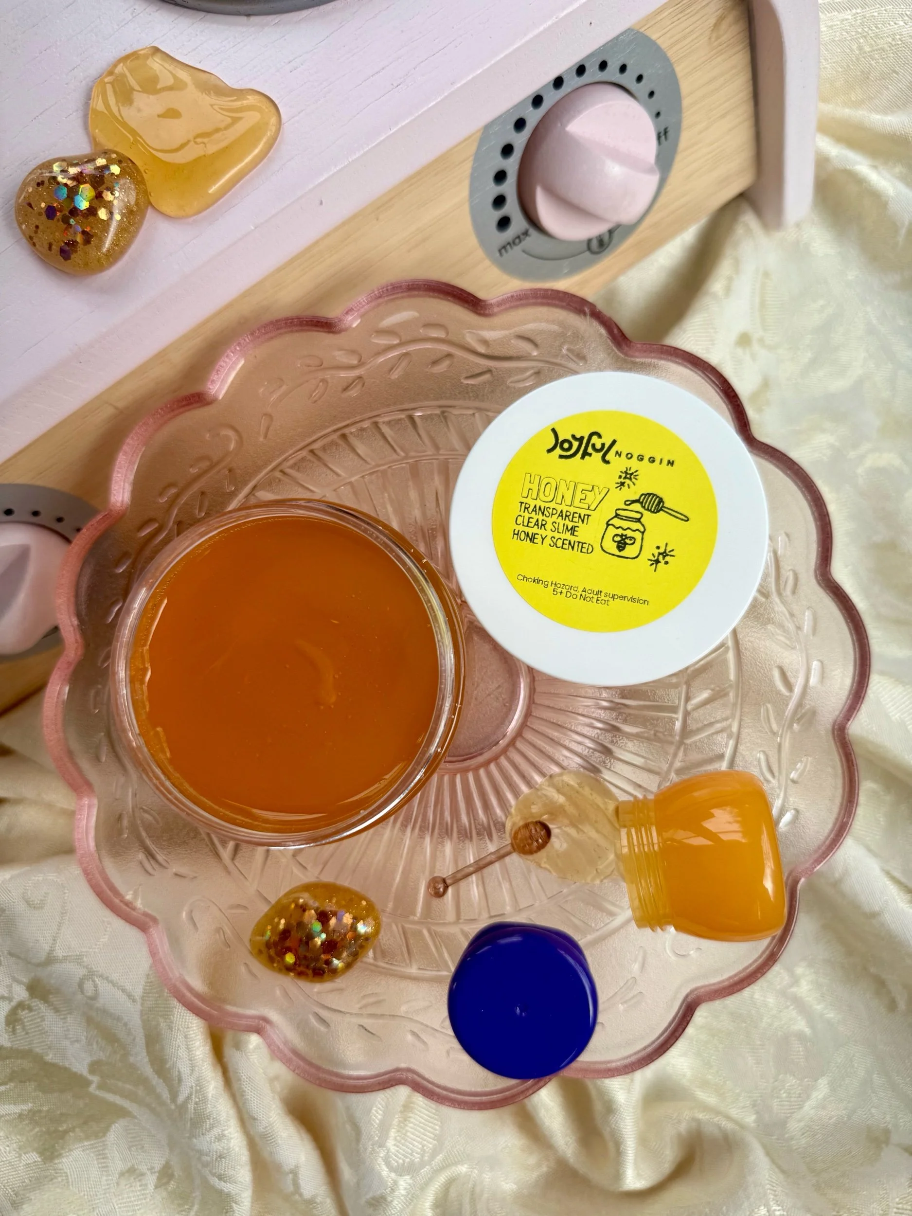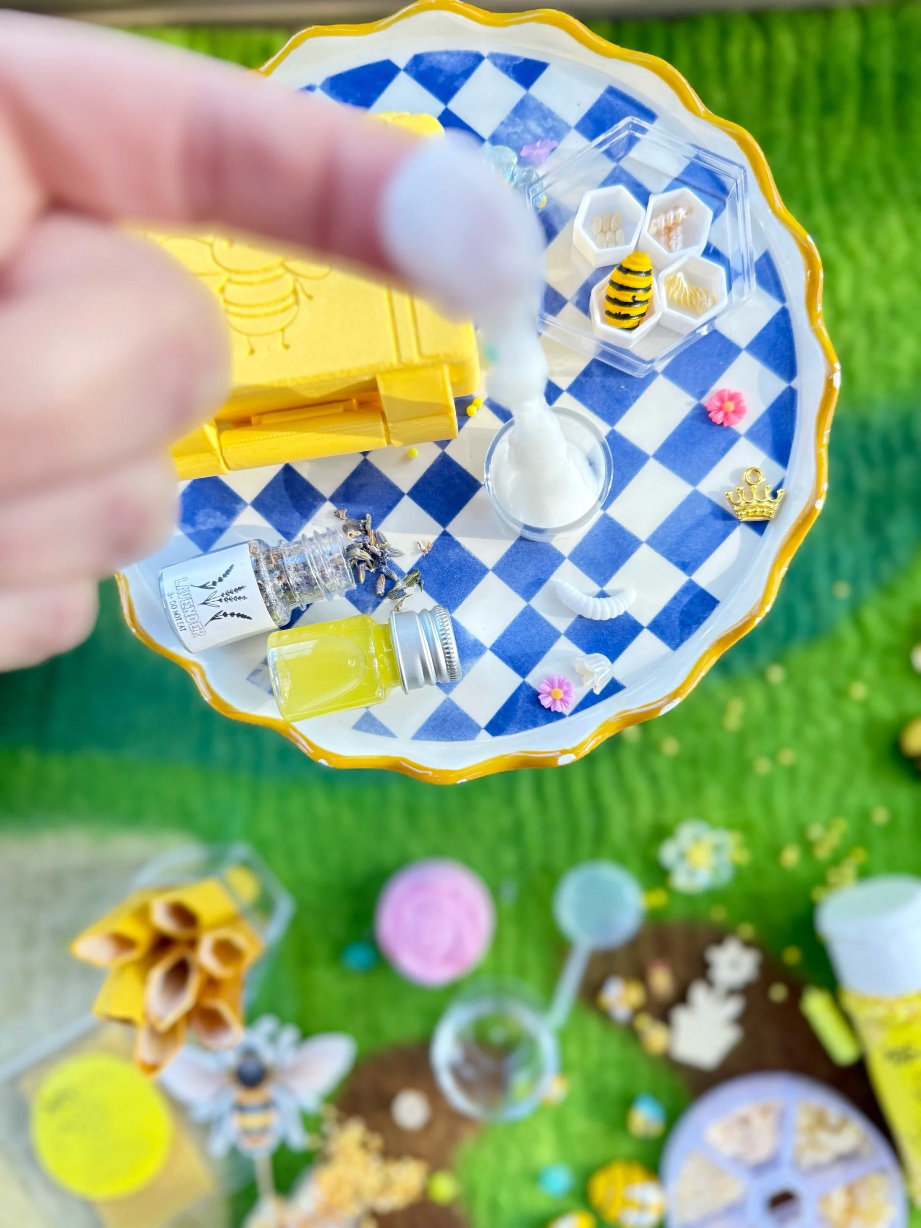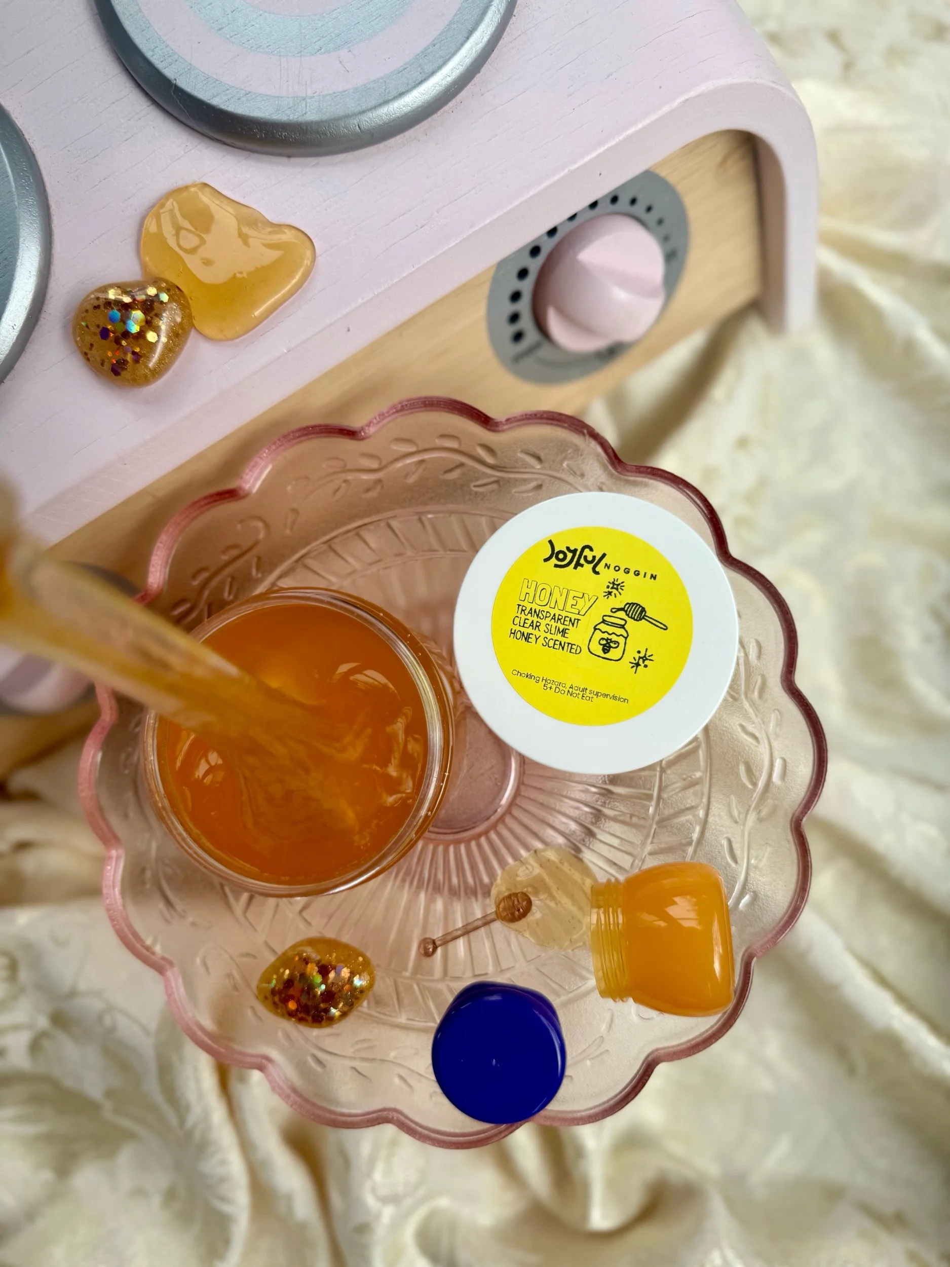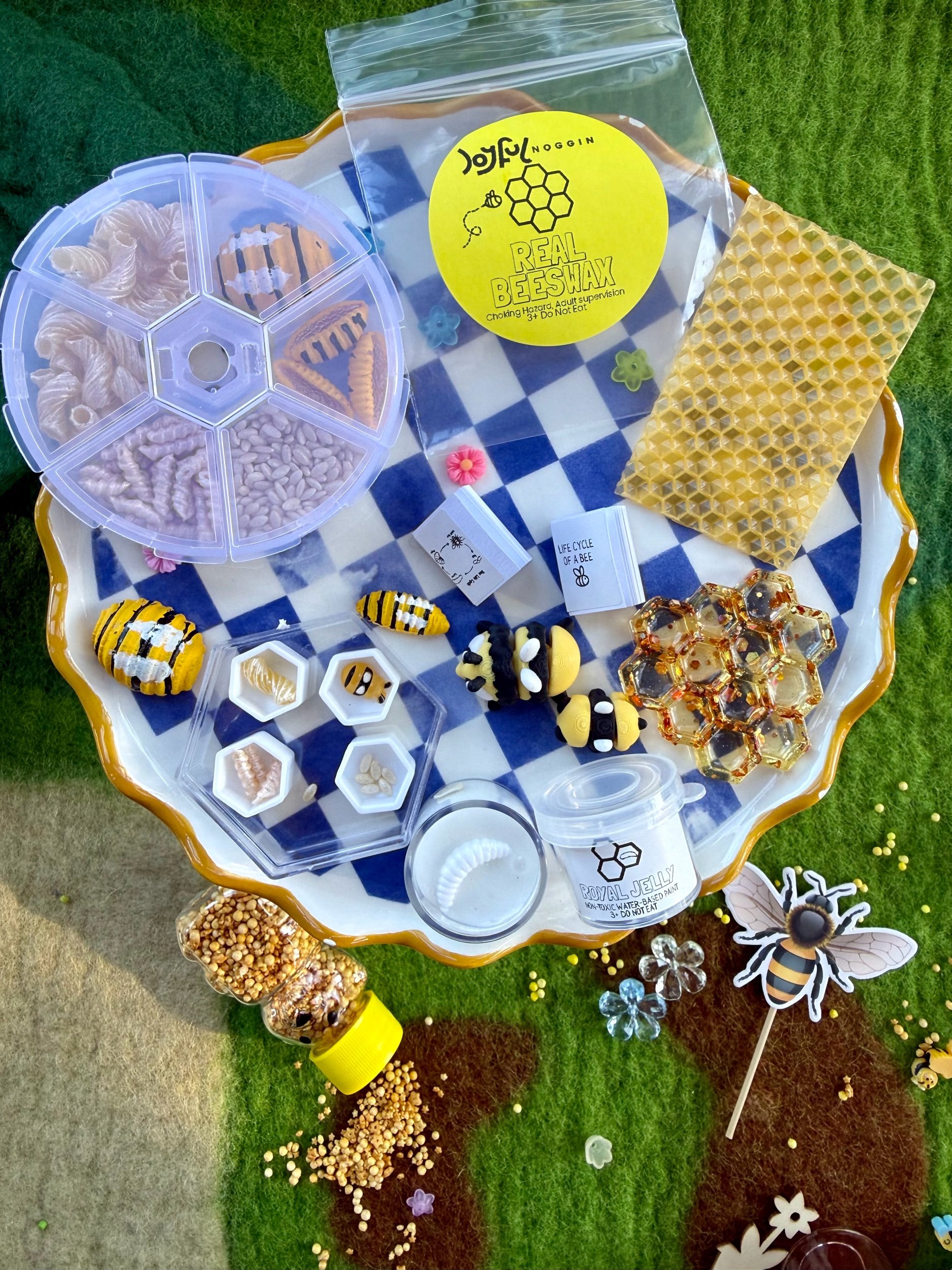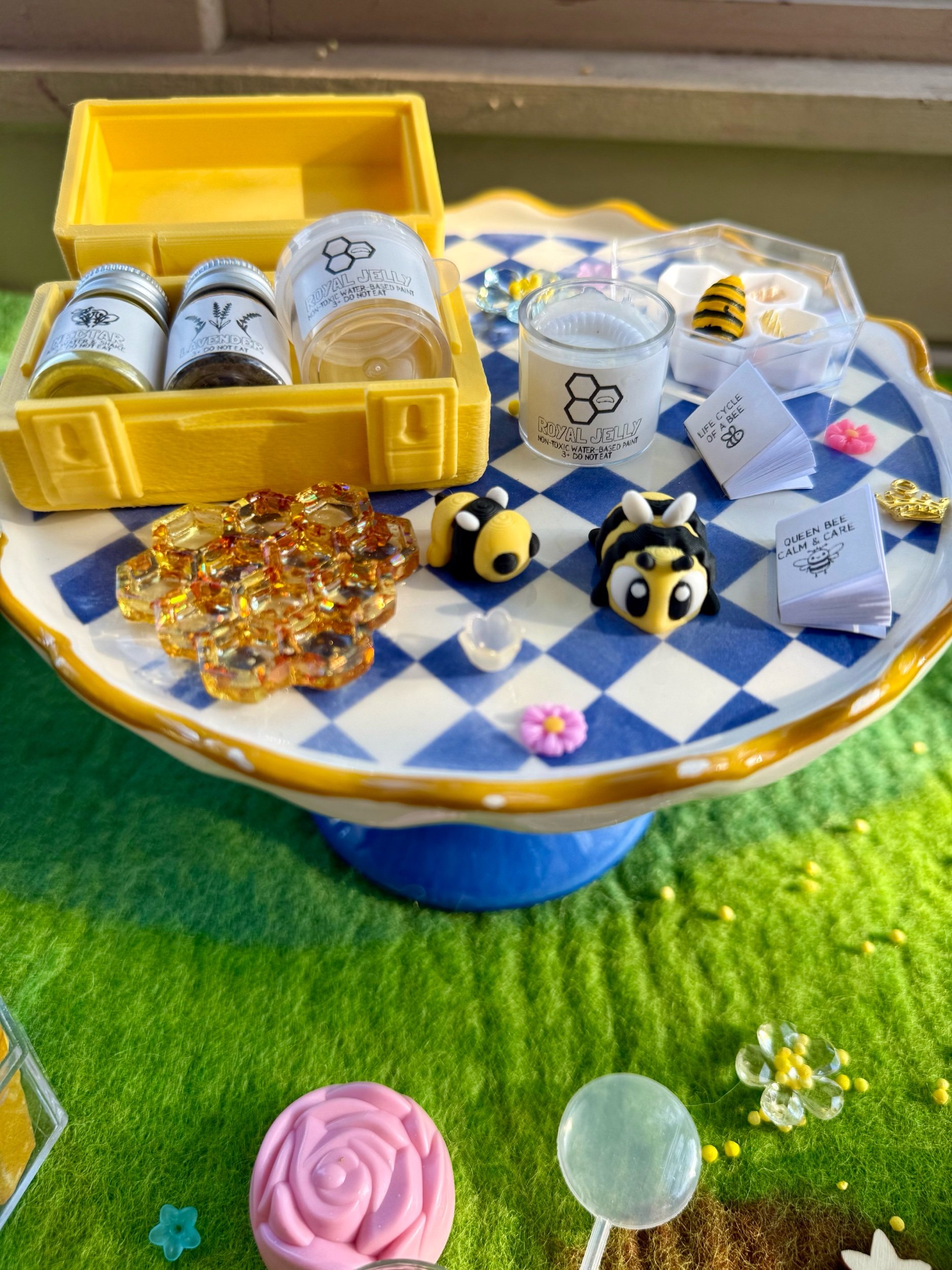 • Four beautiful, matching resin pieces by Tara – Wild Ones Resin, to pour nectar, mix, or slime onto to replicate how honey is made