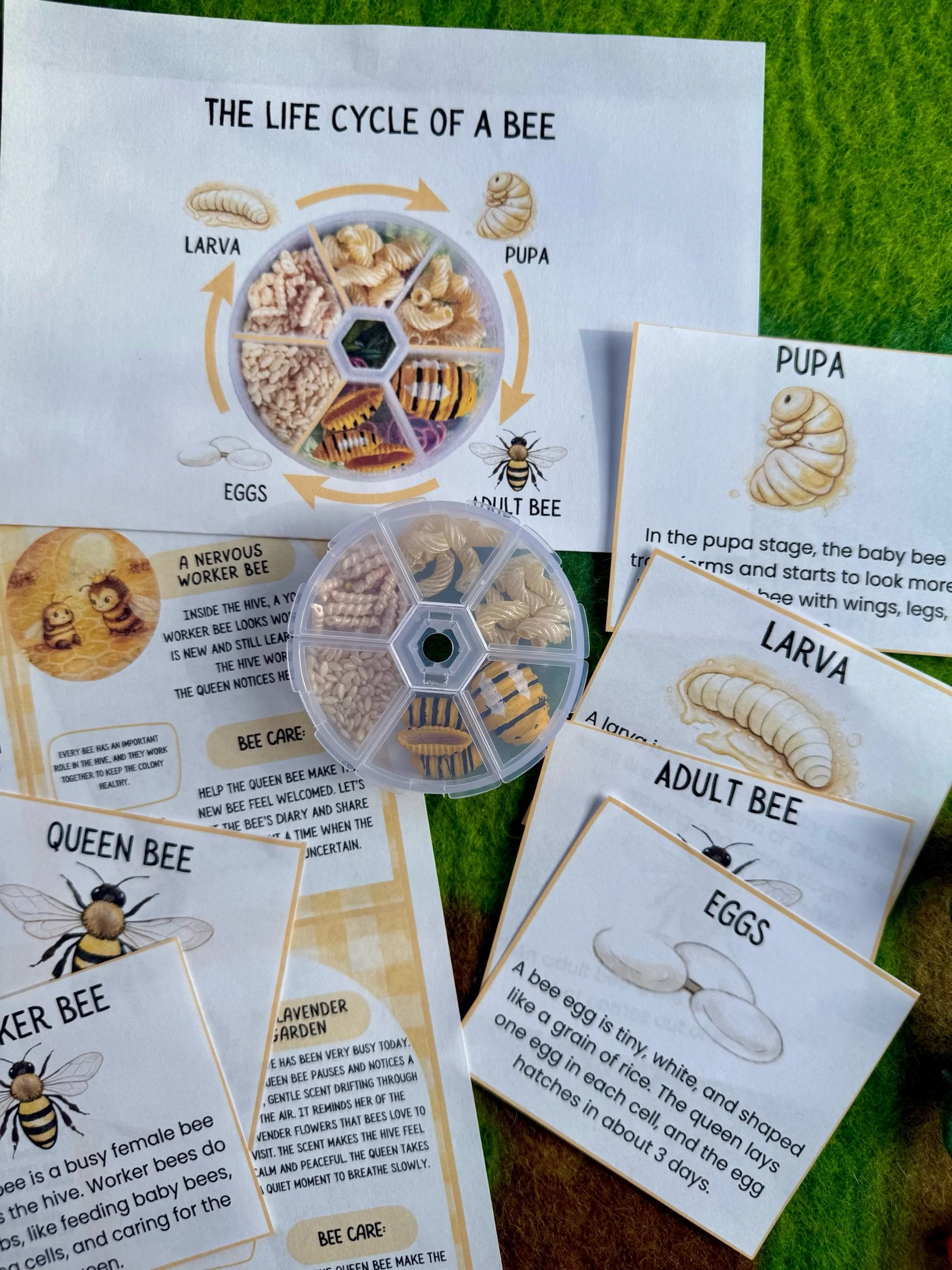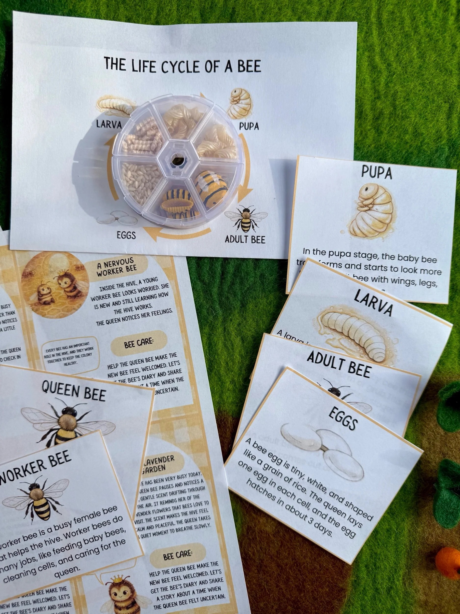 Children can sort the stages and discover how a tiny egg grows into a worker bee or even a Queen.