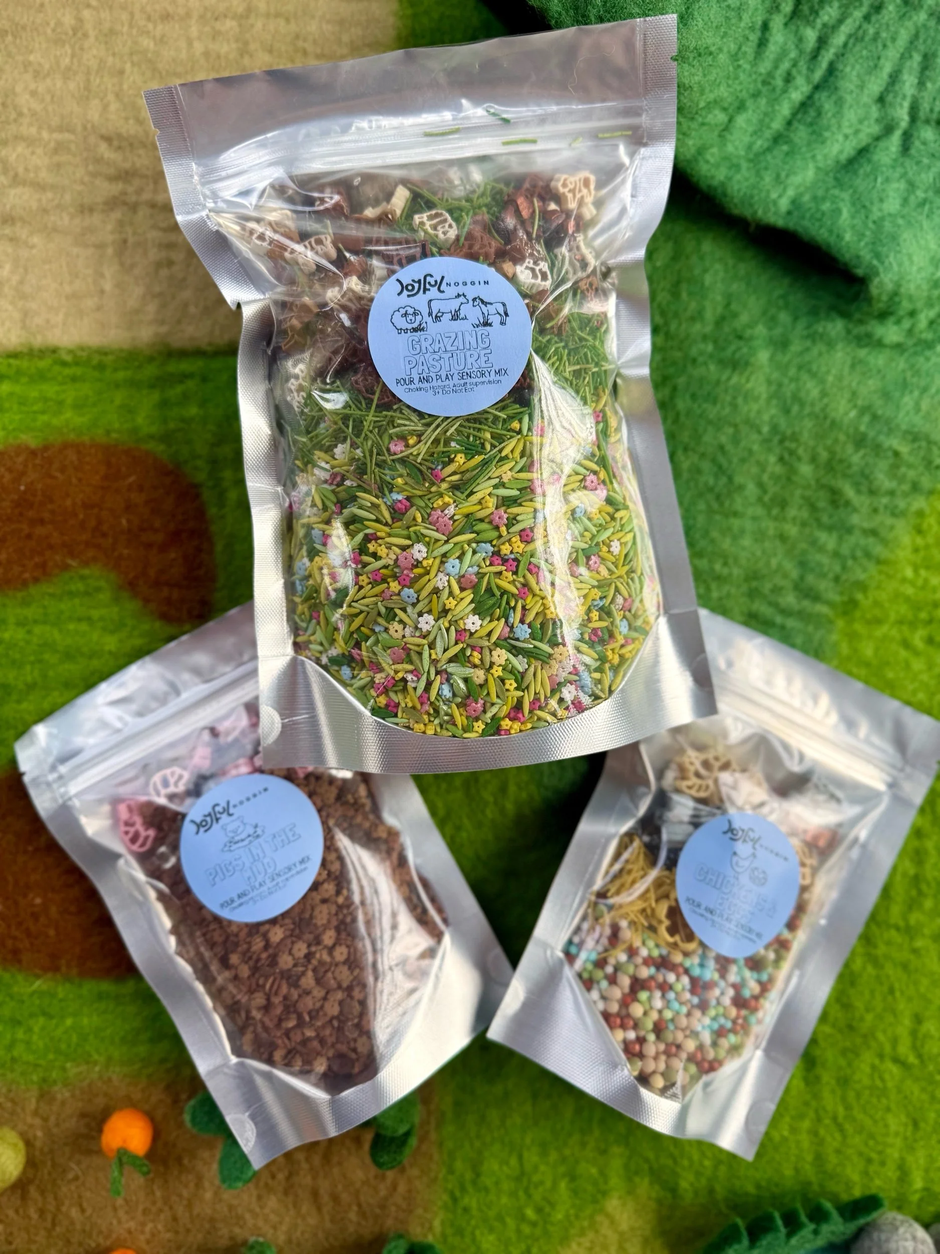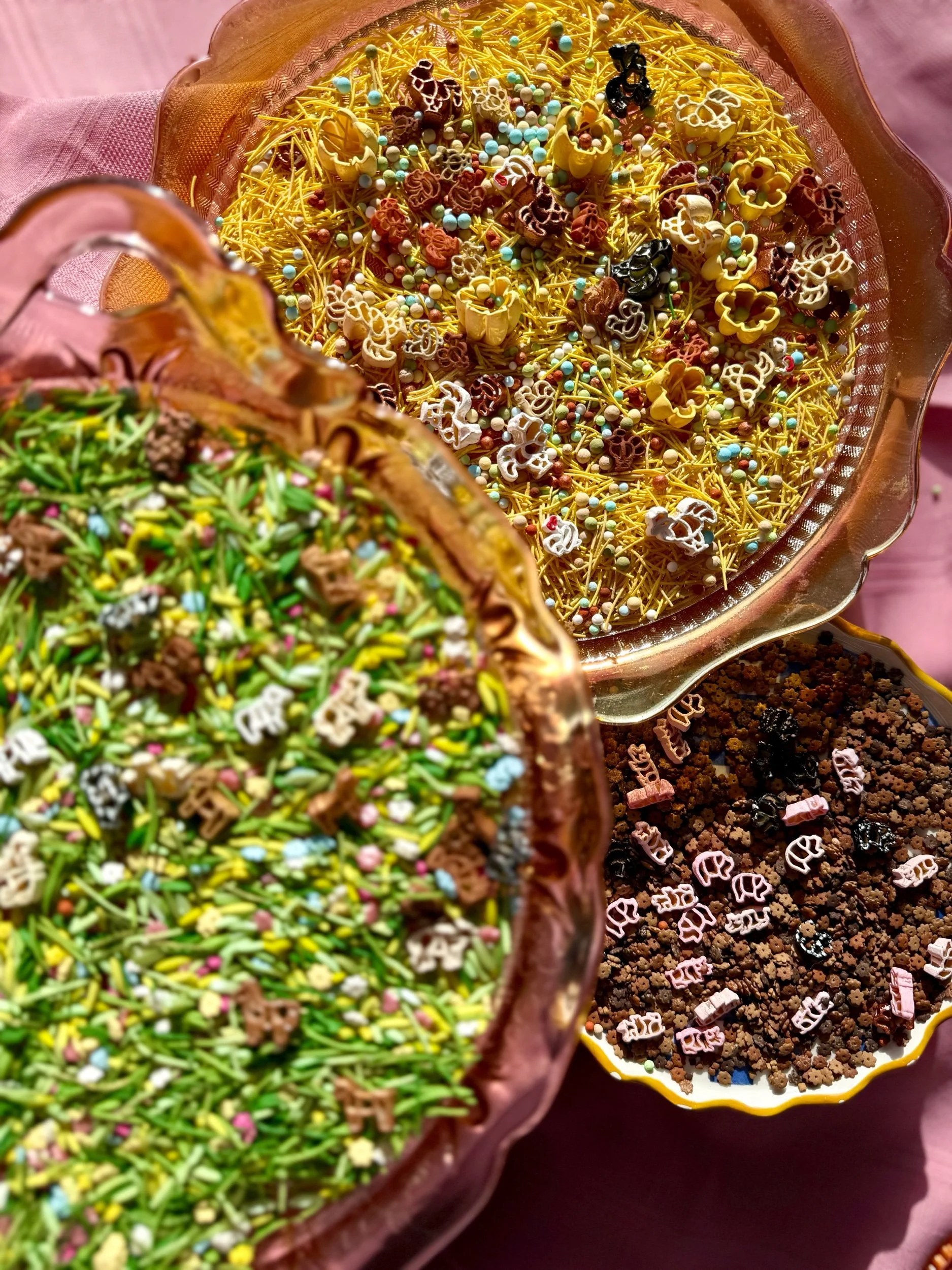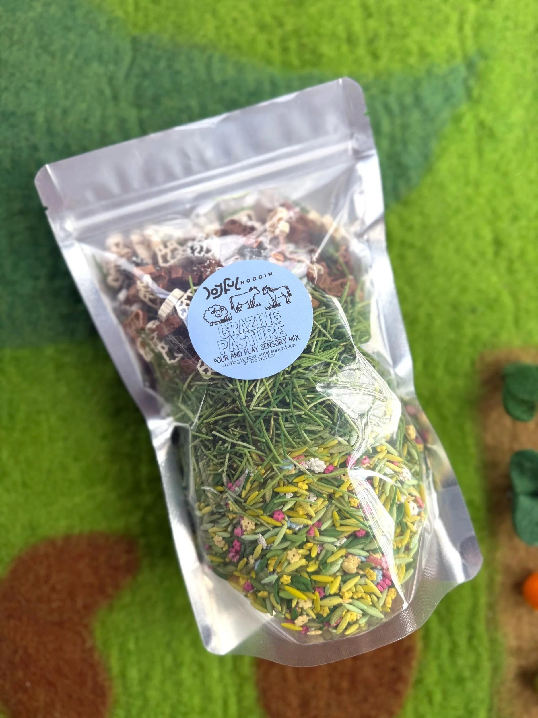 • Handcrafted Sensory Materials – MAY INCLUDE: pasta, chickpeas, corn products, and tapioca (not intended for consumption).