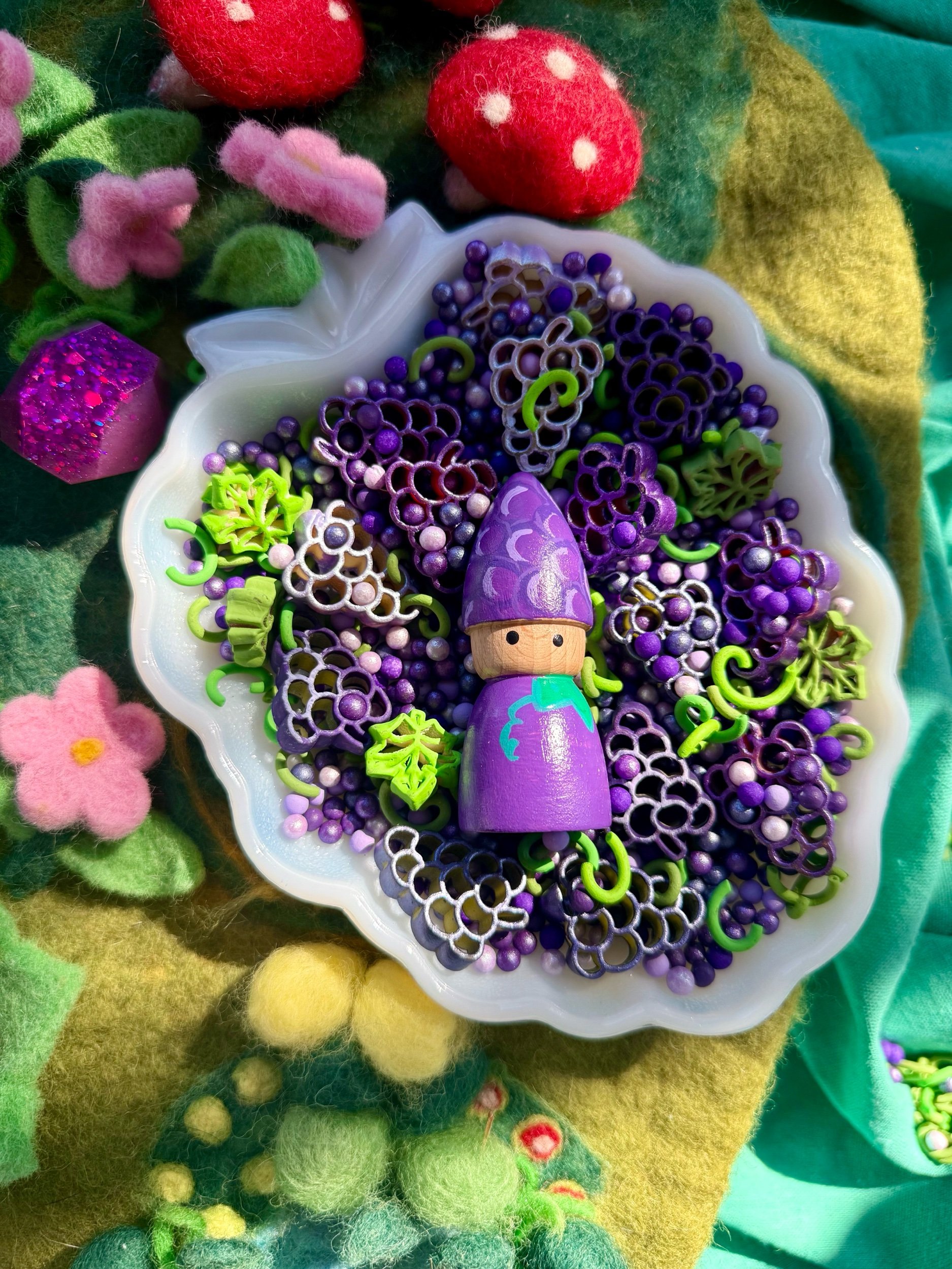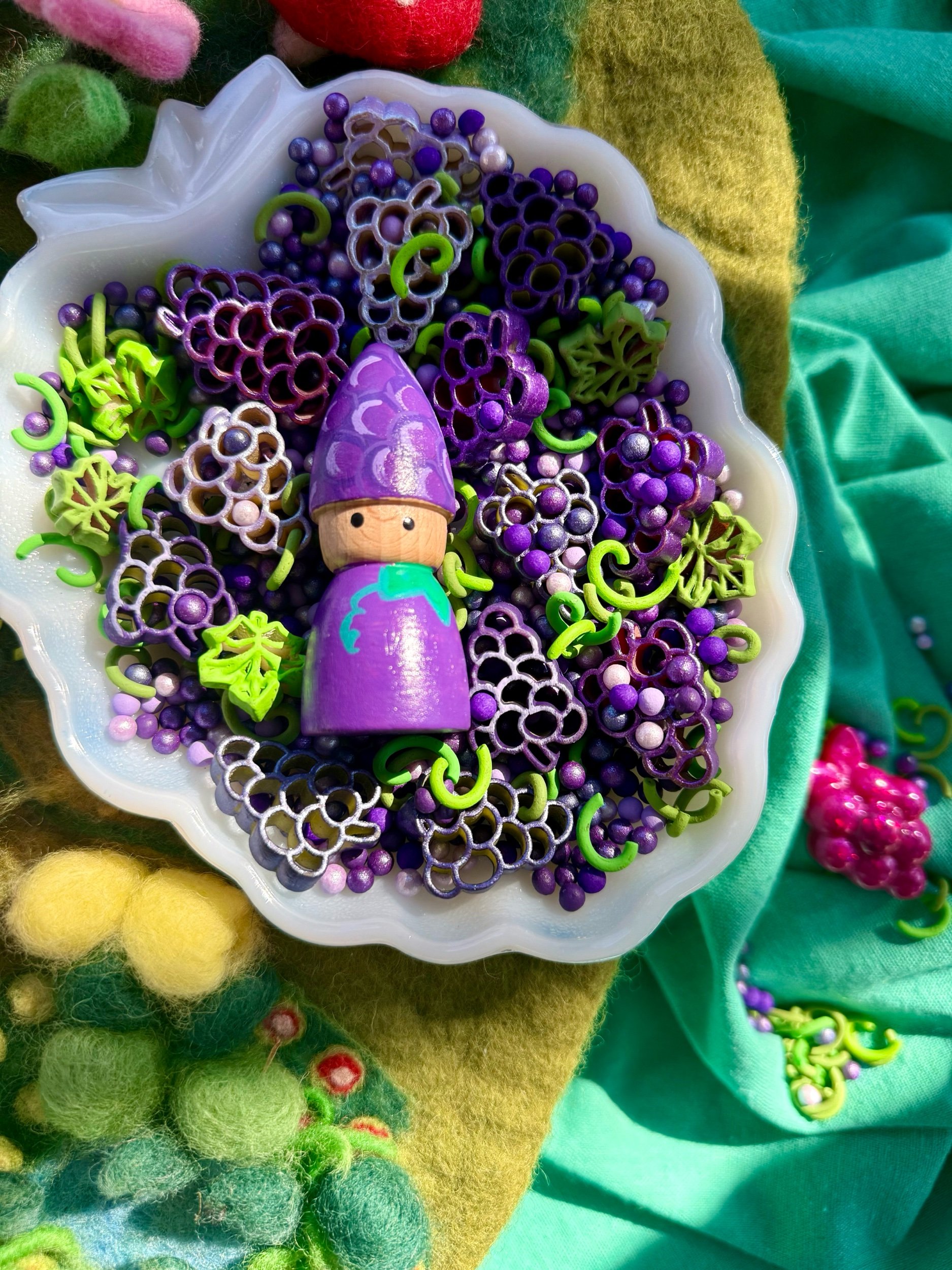• Hand-painted Grape Gnome - Hand painted by My Big World Playscapes that perfectly matches the shades of purple and green in the Grapes on the Vine Mix!